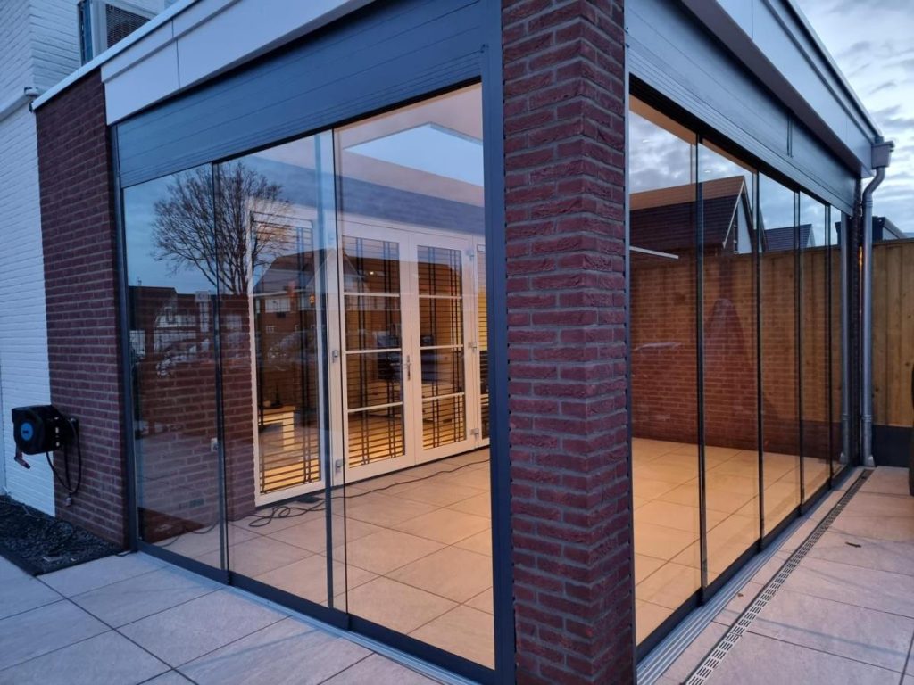 Met glazen schuifwanden geniet je het hele jaar door van jouw veranda. Beschermd tegen wind en regen, maar met behoud van licht en uitzicht. Elegant, praktisch en eenvoudig te bedienen.